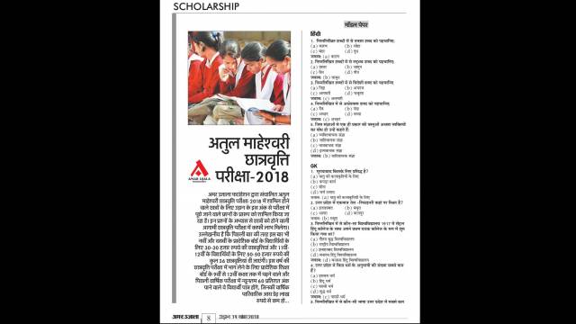 अमर उजाला फाउंडेशन द्वारा संचालित अतुल माहेश्वरी छात्रवृत्ति परीक्षा -2018 में शामिल होने वाले विद्यार्थियों के लिए परीक्षा में पूछे जाने वाले प्रश्नों के प्रारूप को अमर उजाला के उड़ान मैगजीन में बुधवार, 14 नवम्बर, 2018 को शामिल किया गयाl इन प्रश्नों के अभ्यास से छात्रों को आगामी परीक्षा में काफी लाभ मिलेगाl