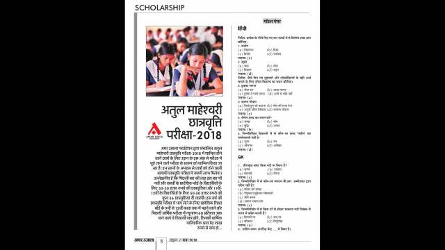 अमर उजाला फाउंडेशन द्वारा संचालित अतुल माहेश्वरी छात्रवृत्ति परीक्षा -2018 में शामिल होने वाले विद्यार्थियों के लिए परीक्षा में पूछे जाने वाले प्रश्नों के प्रारूप को अमर उजाला के उड़ान मैगजीन में बुधवार, 7 नवम्बर, 2018 को शामिल किया गयाl इन प्रश्नों के अभ्यास से छात्रों को आगामी परीक्षा में काफी लाभ मिलेगाl